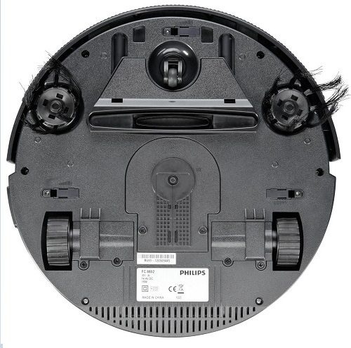 Le Philips EasyStar FC8802 est prévu pour nettoyer les sols durs uniquement : il est équipé de 2 brosses latérales, pour ramasser la poussière sur les sols de type parquet ou carrelage. Ces brosses renvoient la poussière vers un orifice qui aspirateur la poussière vers un bac. Ce bac, d’une capacité de 2L, est équipé d’un filtre classique en sortie.